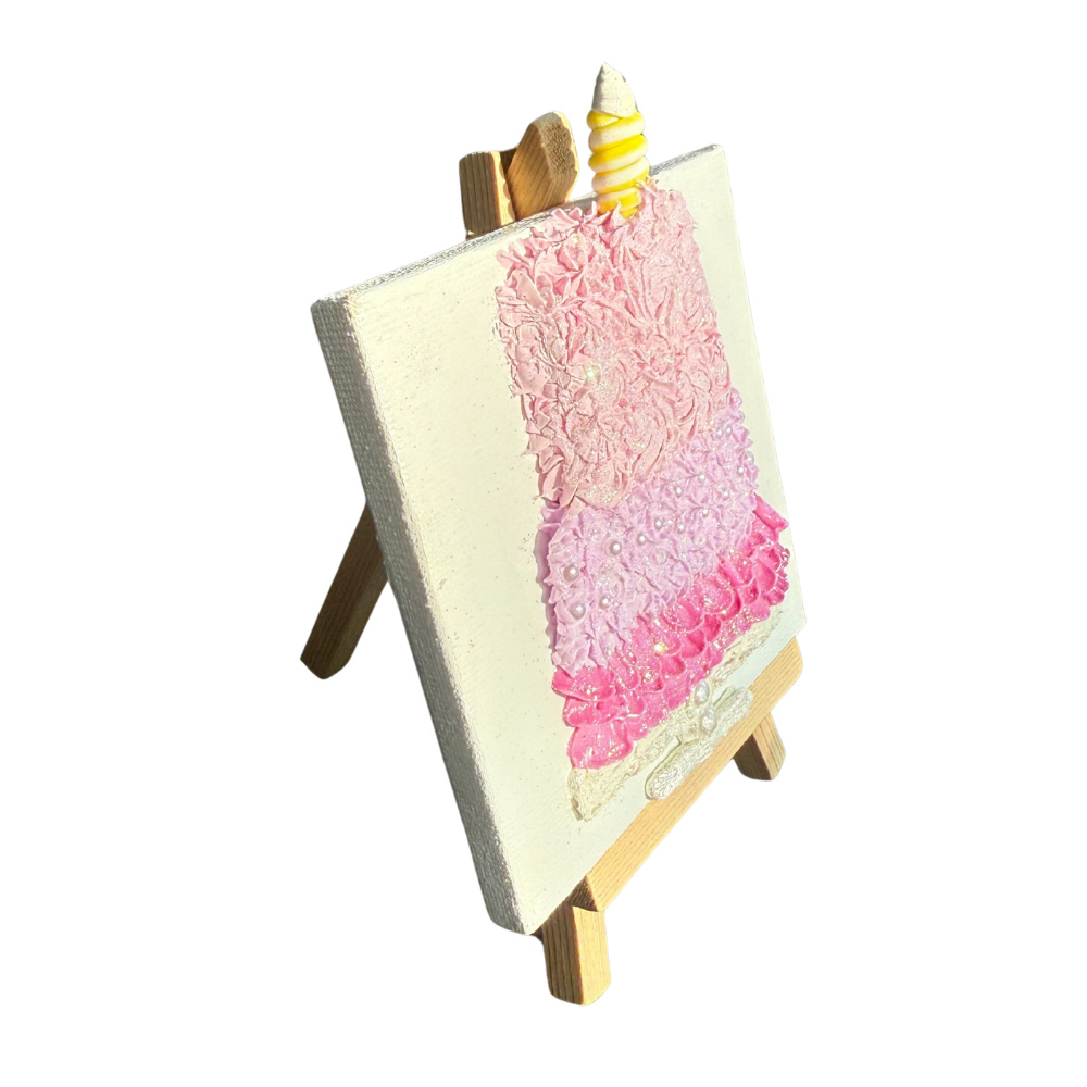 Created on a 4x4 mini gallery canvas with easel, it’s the perfect size to add charm to desks, shelves, or cozy corners—bringing a touch of sweetness to any space.