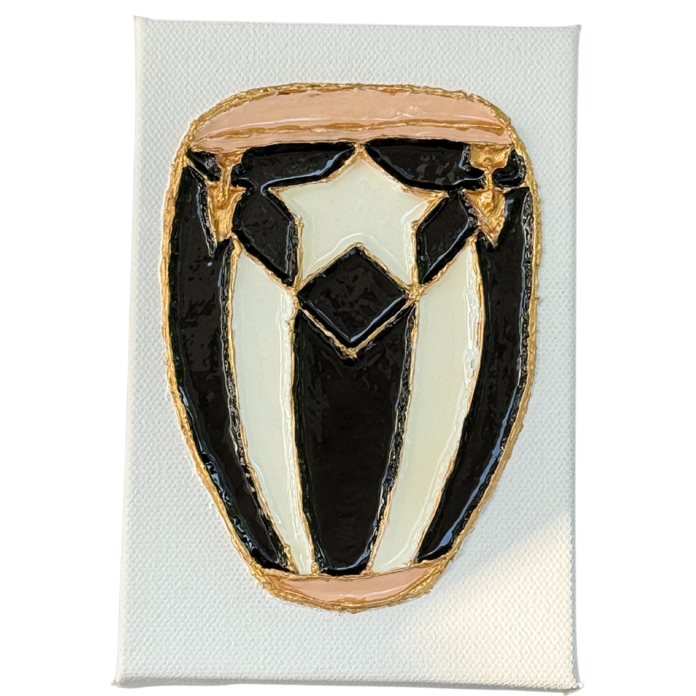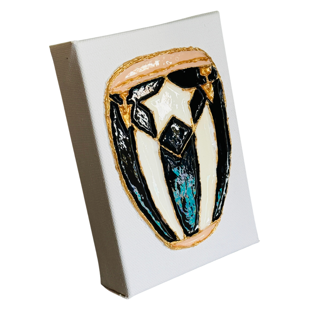 Hand-painted with heavy textured acrylic paint, it captures the bold spirit of Puerto Rico while radiating a playful, stained-glass-like finish. Instead of traditional black outlines, shimmering gold details make the design pop—giving it a unique, modern, and artistic twist inspired by cartoon cakes.